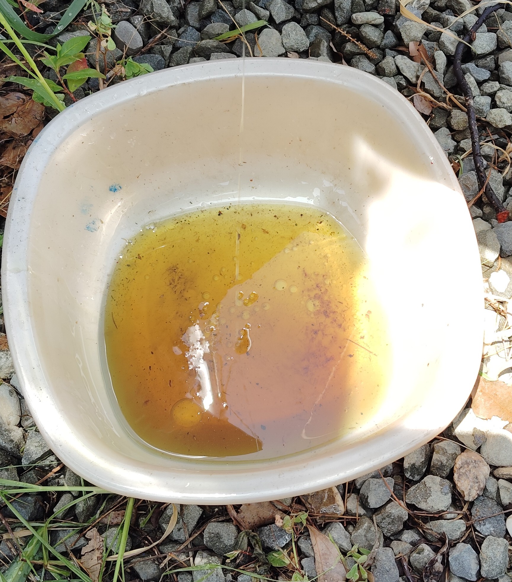 前回からの運転時間の増加は25時間程ですが、ほぼ1年を経過していますのでオイルが劣化しているだろうとまずエンジンオイルの交換。 真っ黒に汚れていました。 次いでギャオイルの交換。 こちらは写真の通り汚れはありませんでした。